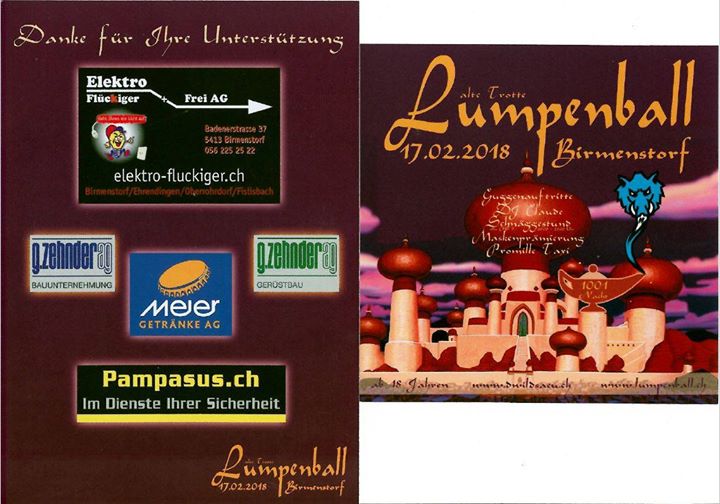 IM DIENSTE IHRER SICHERHEIT heute Abend am LUMPENBALL unter dem Motto 1001 NACHT in BIRMENSTORF/AG.